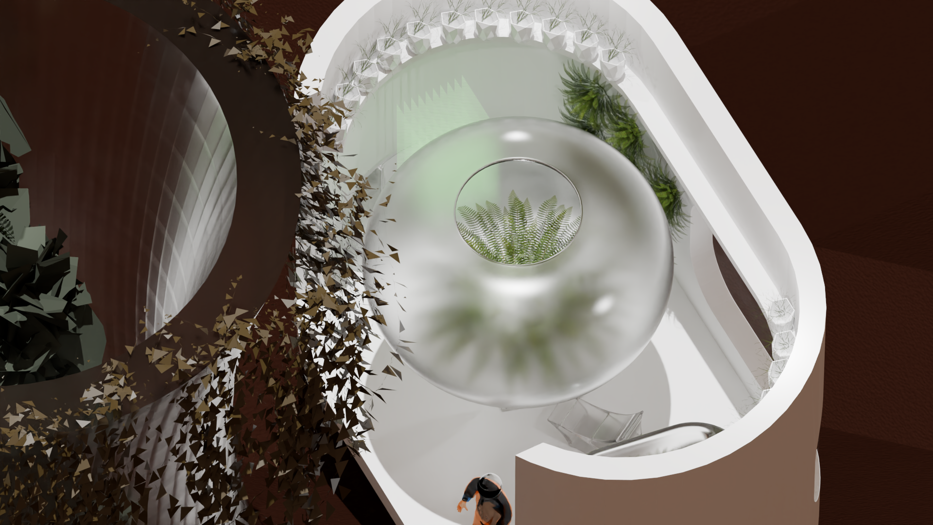 My approach integrates biophilic design with Mars’ unique environment through advanced 3D printing. The goal is to move beyond survival and create habitats that nurture psychological and environmental well being. By incorporating greenery through hydroponic and aeroponic systems and using Martian materials for construction, Green Mars envisions sustainable interiors that harmonize technology, nature, and the Martian landscape.