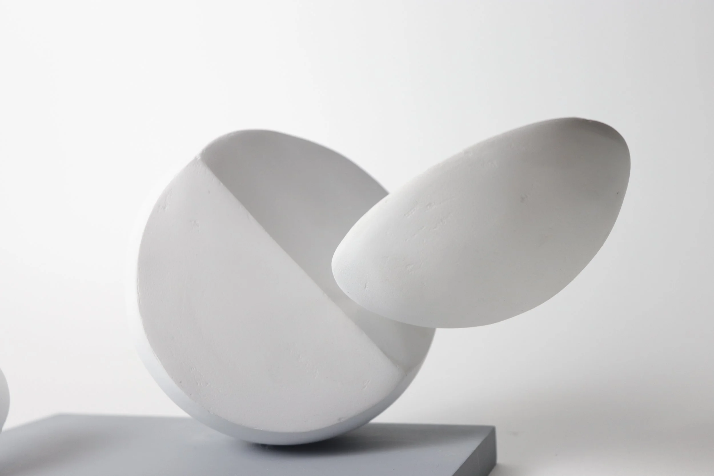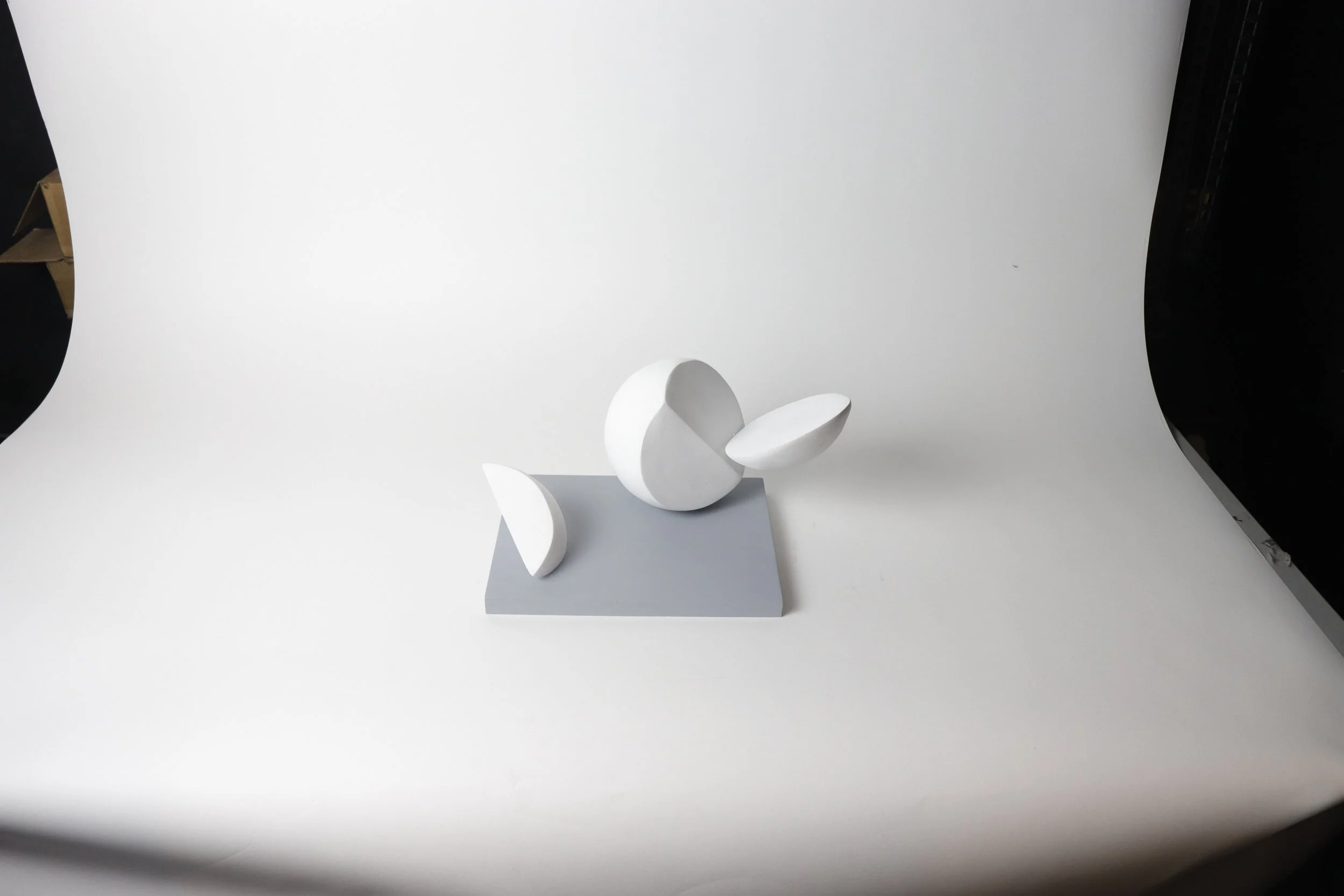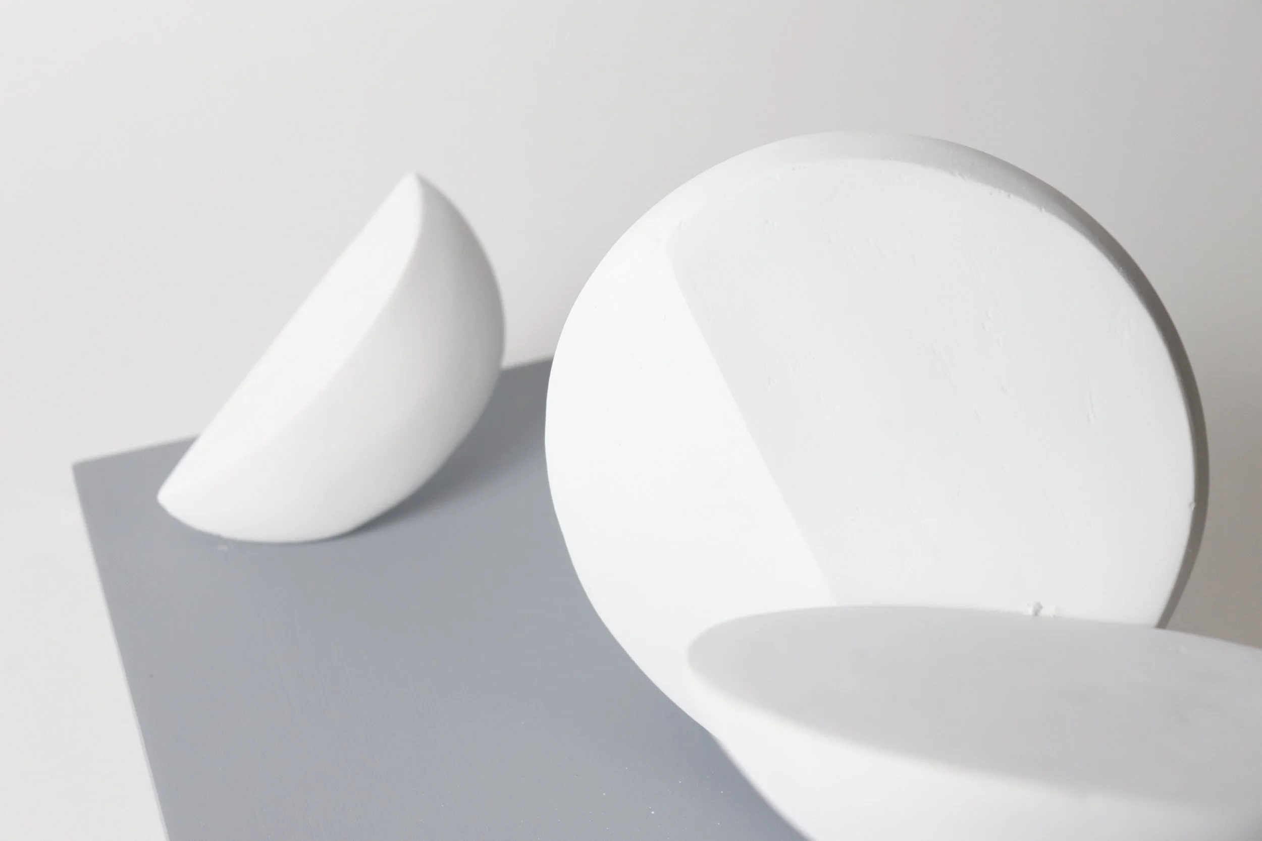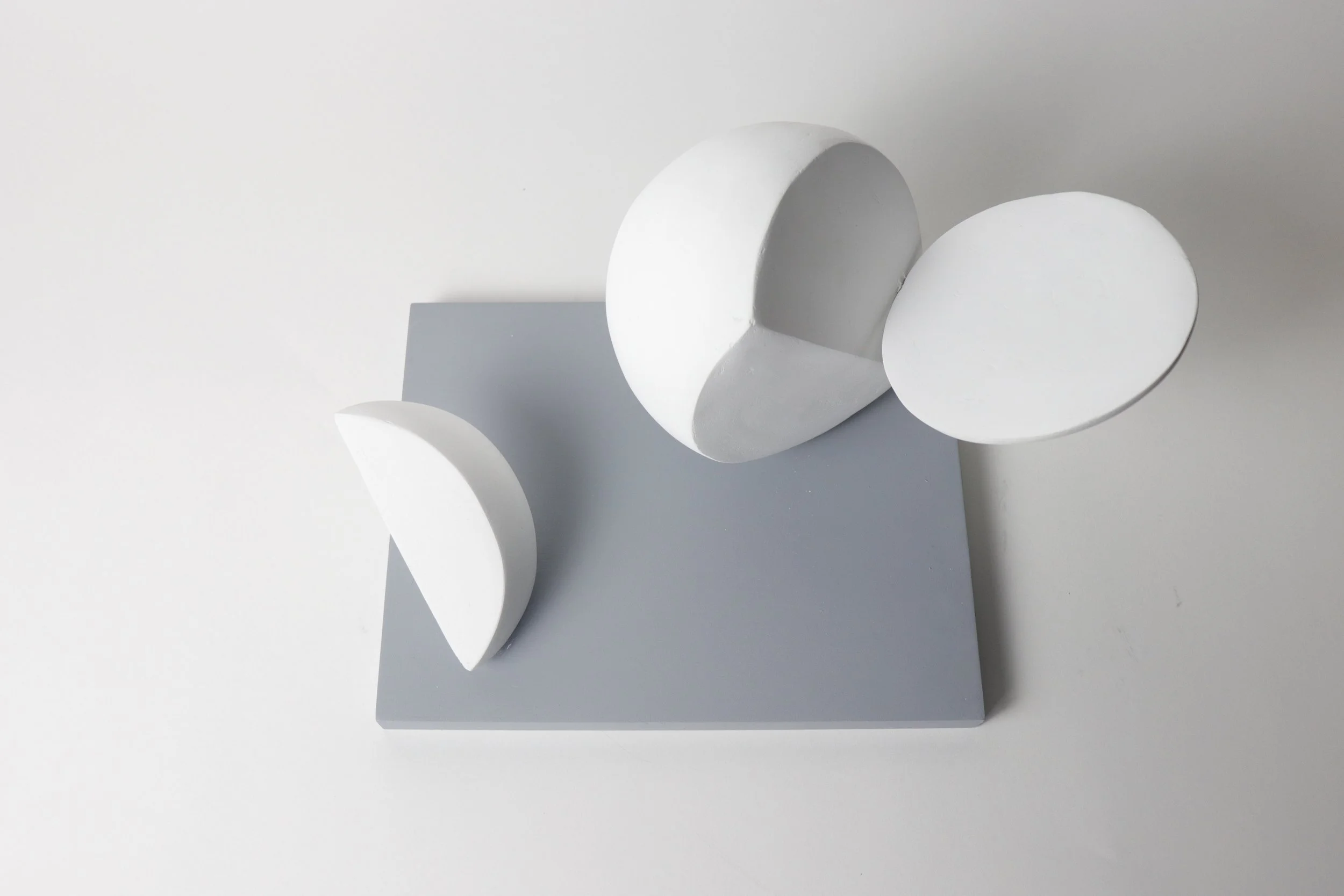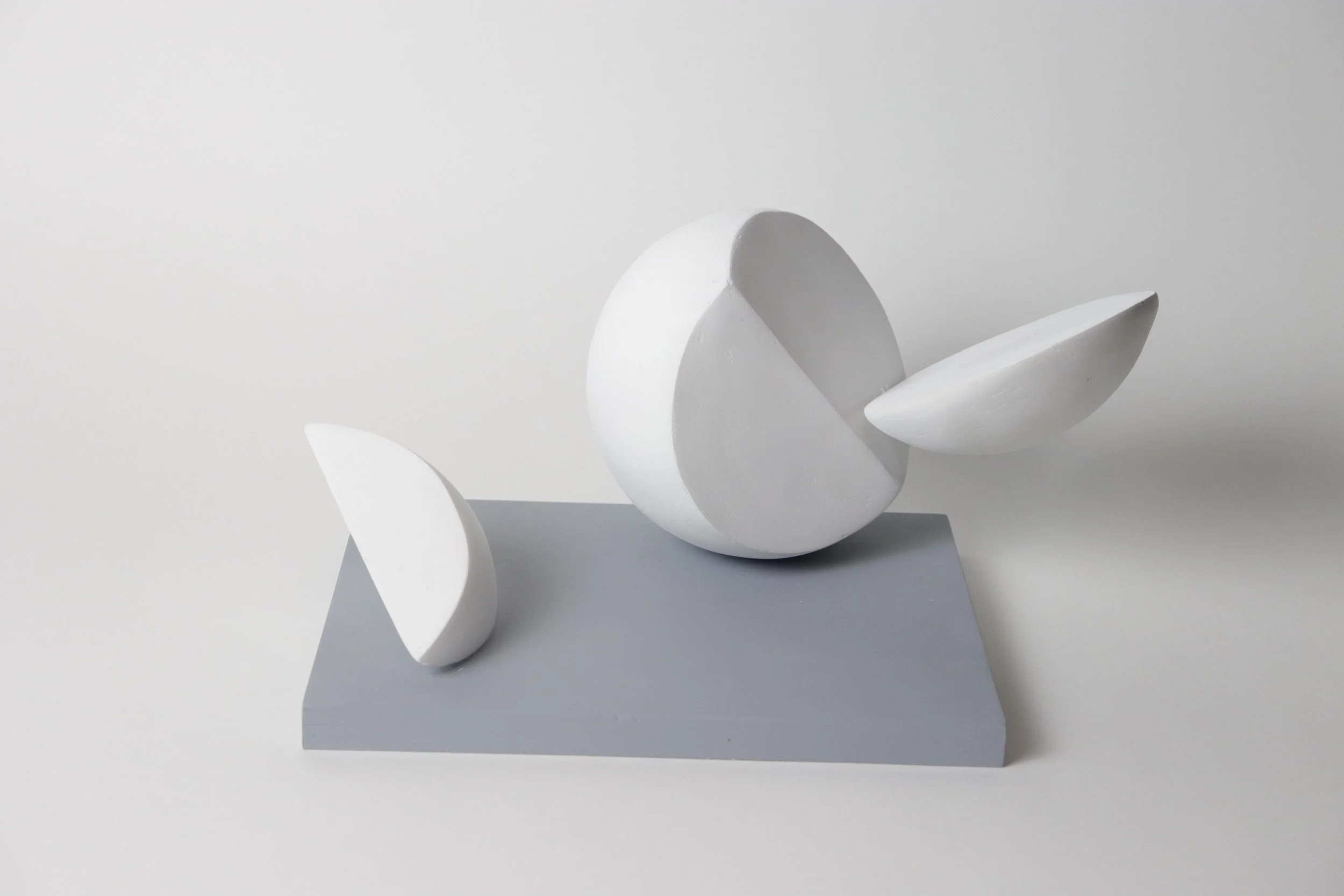 Experimented with form and scale to finalize the design of the Fragments. Used styrofoam as the main material, coated it with 5-7 layers of joint compound and sanded it for a clean finish.