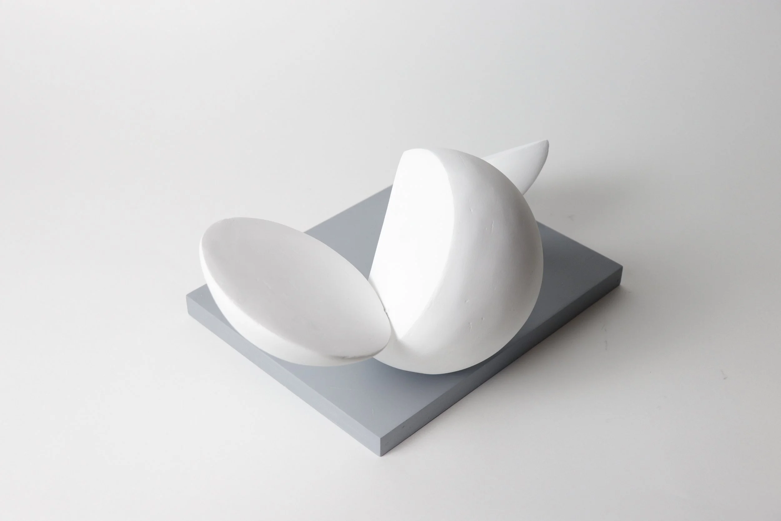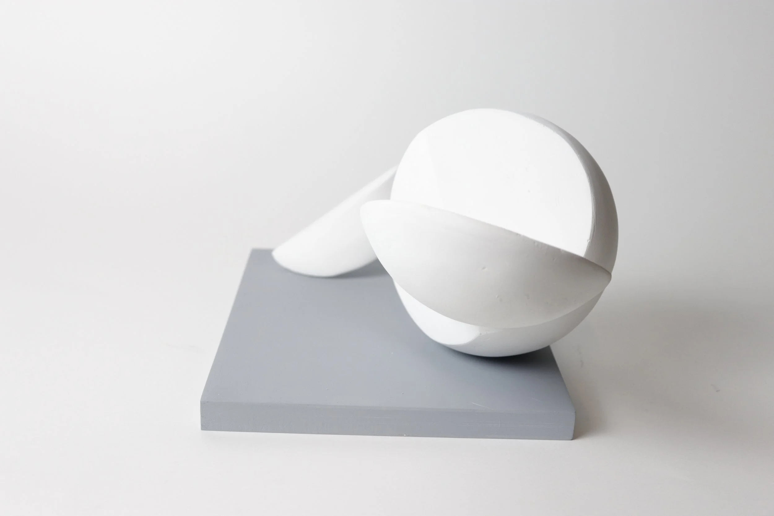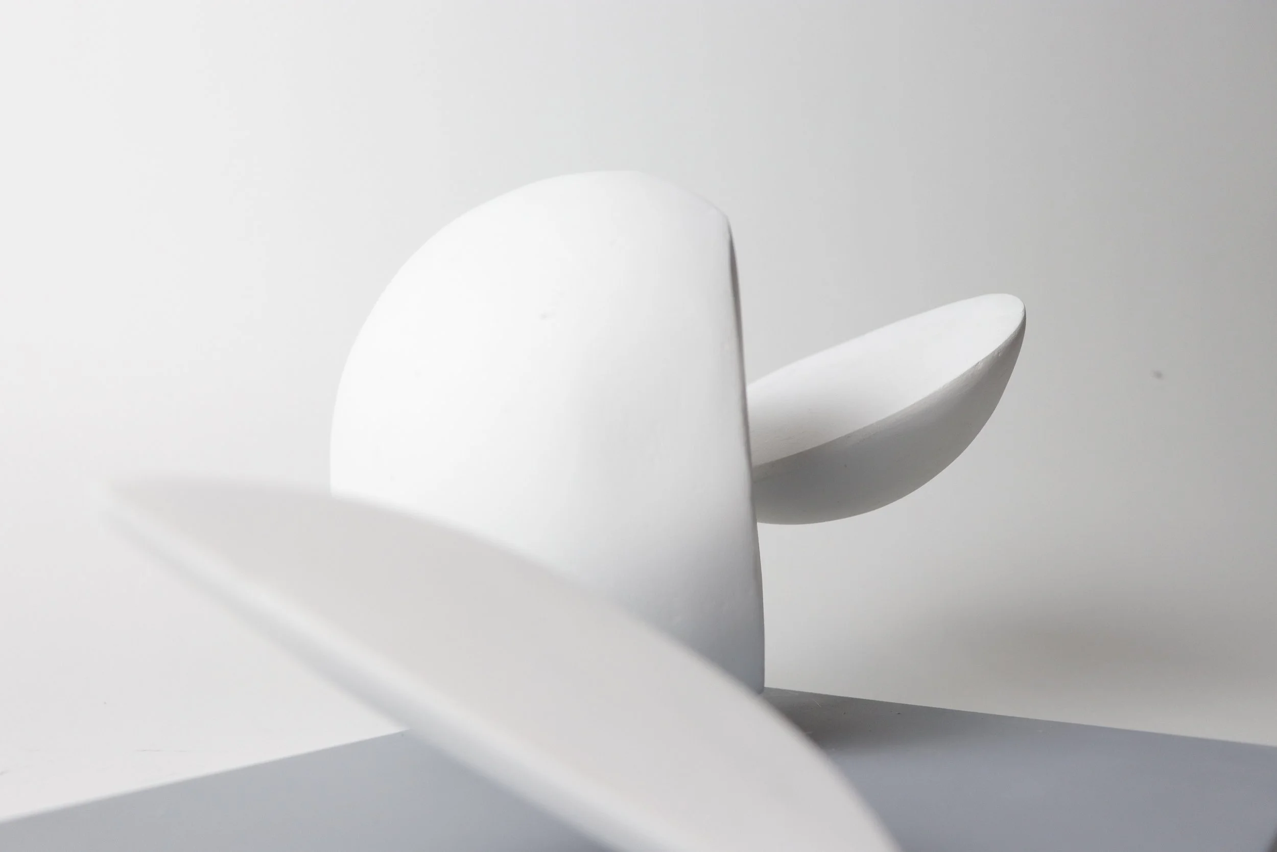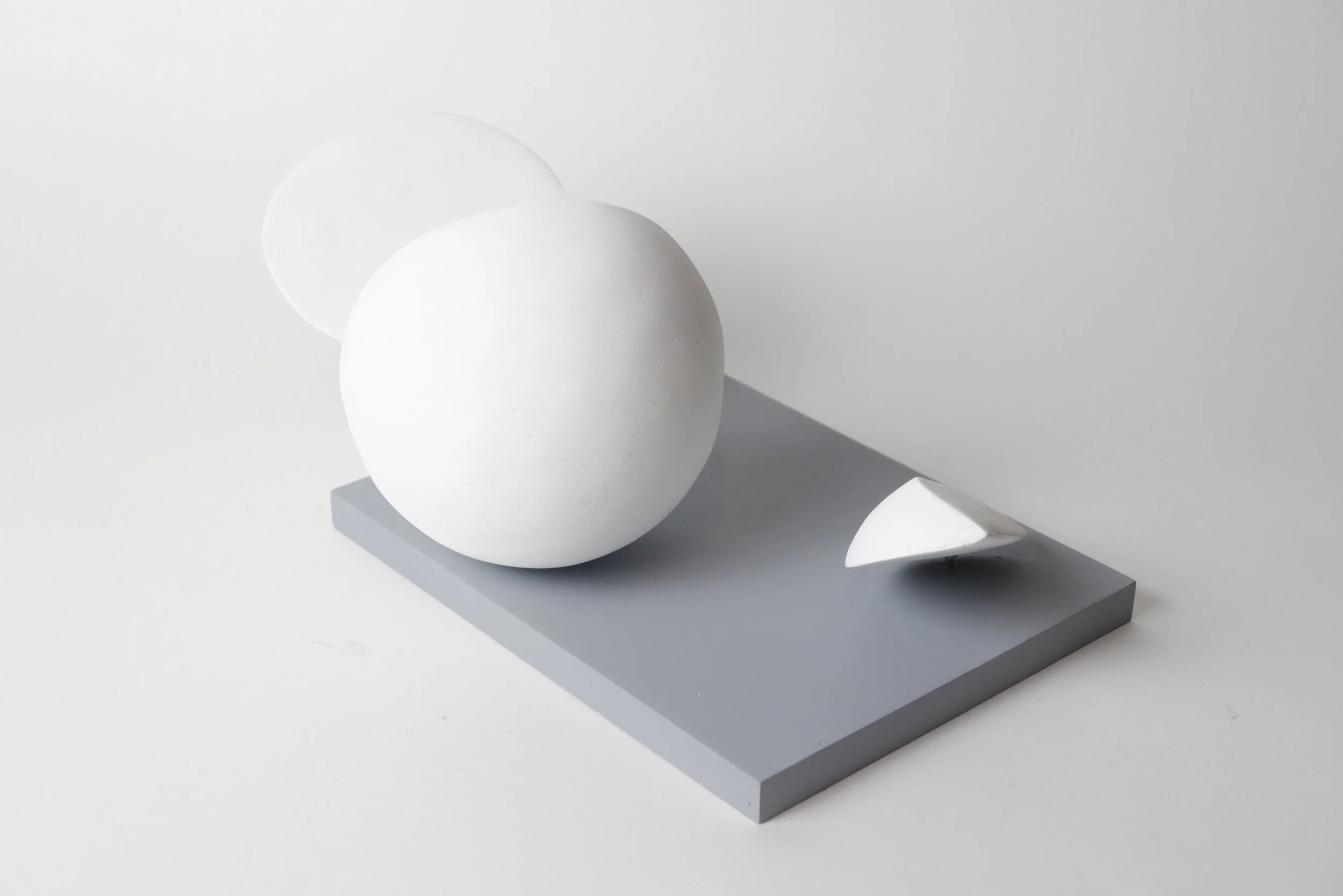 Experimented with form and scale to finalize the design of the Fragments. Used styrofoam as the main material, coated it with 5-7 layers of joint compound and sanded it for a clean finish.