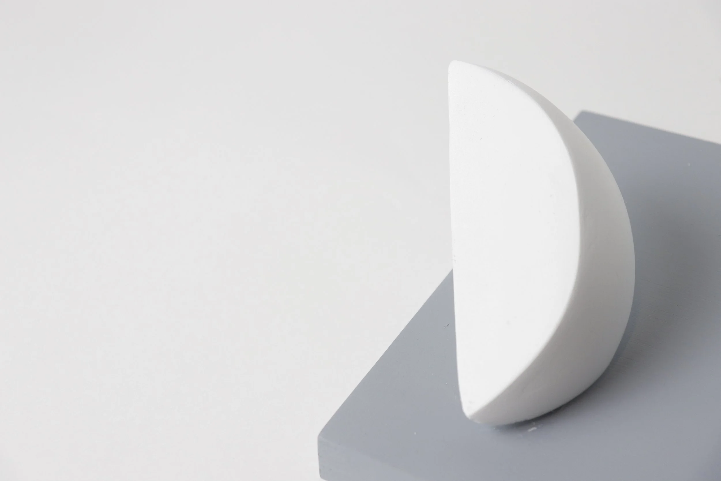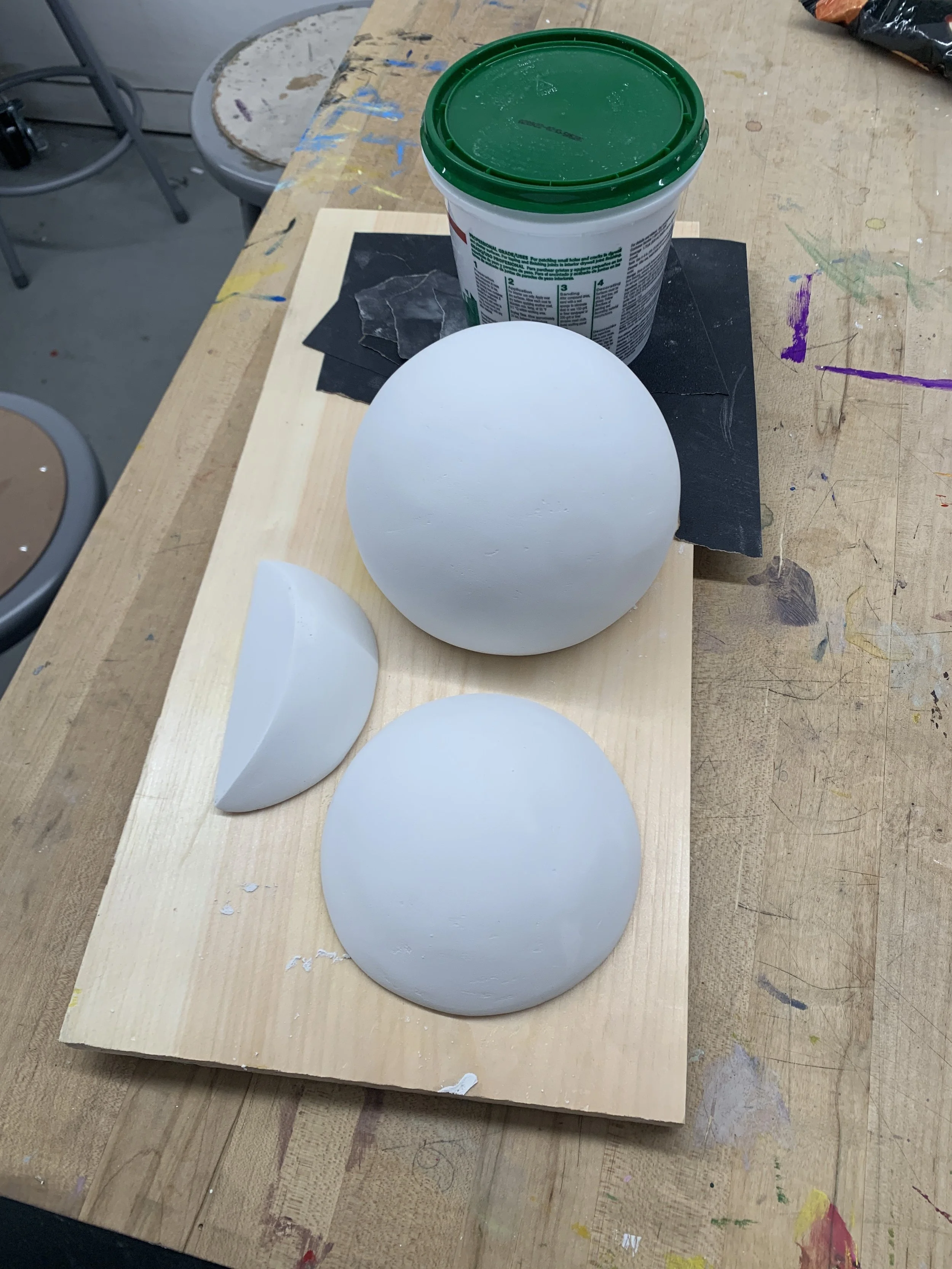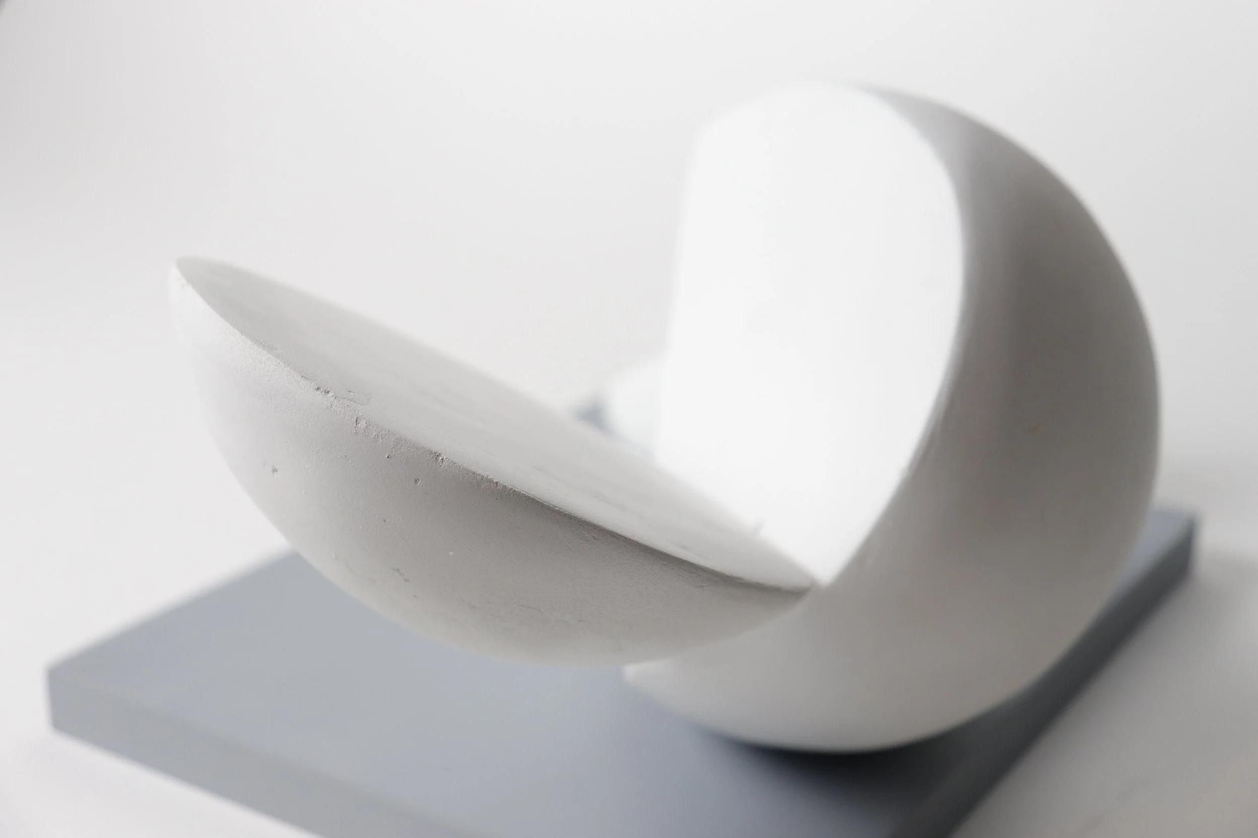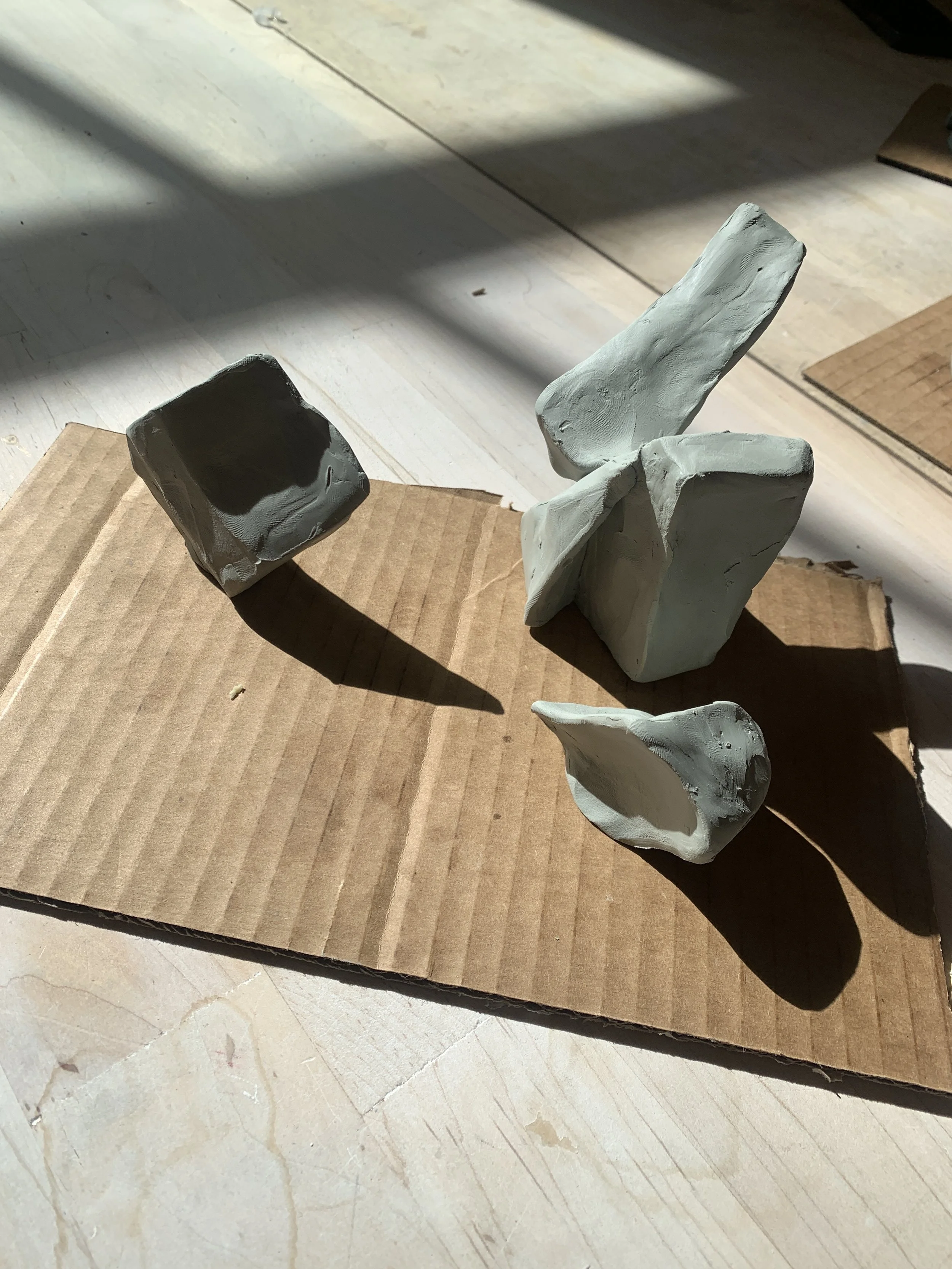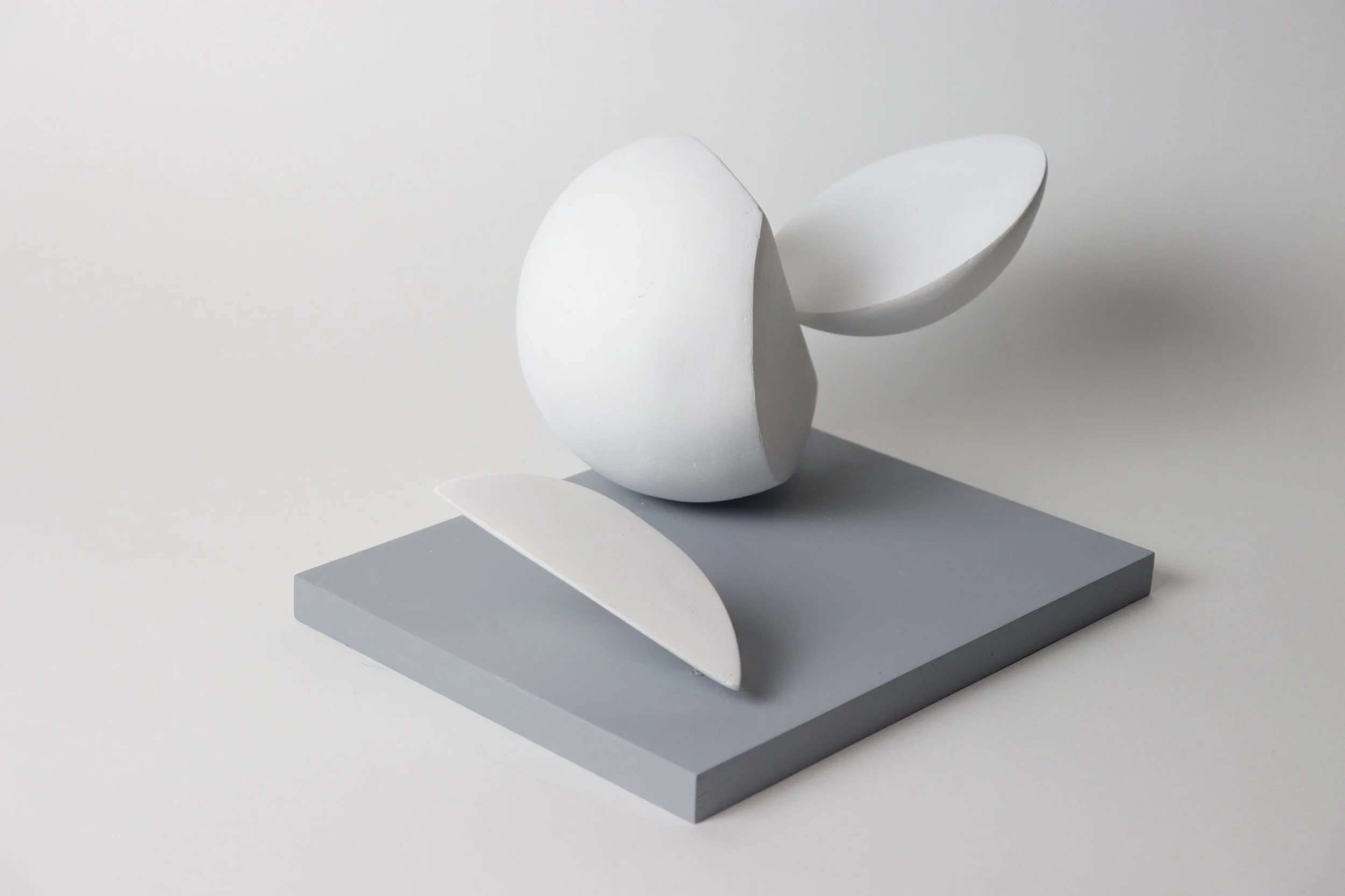 Experimented with form and scale to finalize the design of the Fragments. Used styrofoam as the main material, coated it with 5-7 layers of joint compound and sanded it for a clean finish.